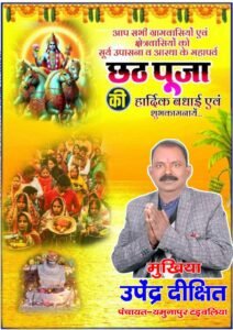 बताते चलें की आज प्रथम दिवस अस्ताचल सूर्य को सायंकाल 5.15 पर व्रतधारी महिला पुरुष अर्ध्य देकर फिर कोषी पूजन करके प्रातः काल उदायमान सूर्य को अर्ध्य देकर व्रत तोड़ेंगे।