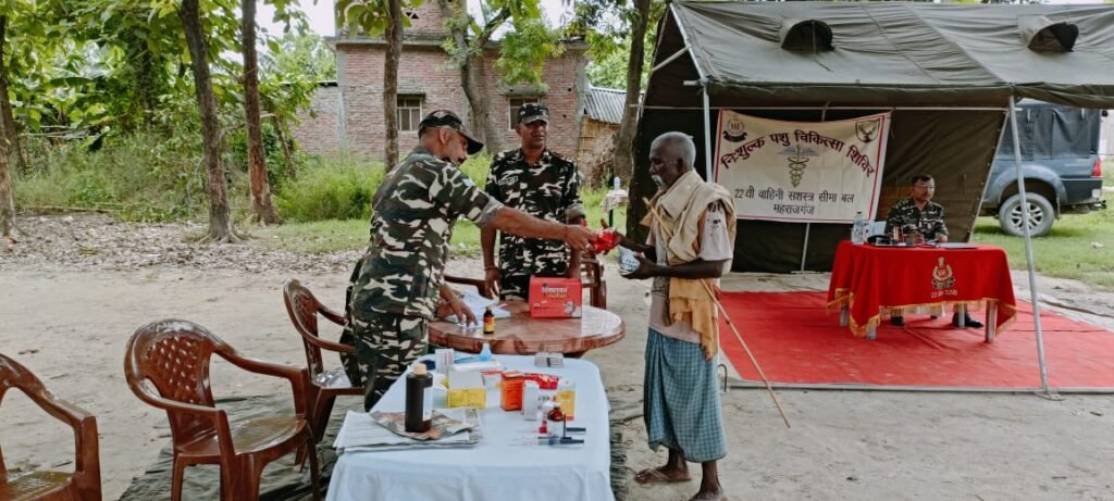जिसमें 22 वीं वाहिनी सशस्त्र सीमा बल महराजगंज के पशु चिकित्सक डॉक्टर सुशांत शहाजी पारेकर व द्वितीय कमान अधिकारी पशु चिकित्सक डॉ. हरदयाल सिंह और विकास चंद्र ने जांच कर दवा का वितरण किया। पथलहवा के समवाय प्रभारी उपनिरीक्षक तरुण कुमार ने बताया कि सशस्त्र सीमा बल के द्वारा बॉर्डर से लगे गांव कनमिसवा औरहवा तिलवारी में तकरीबन 200 से ऊपर जानवरों का मुफ्त जांच कर के दवा का वितरण किया गया।