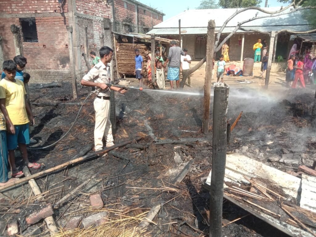 त्रिवेणीगंज, (सुपौल)। नगर परिषद क्षेत्र के बभनगामा वार्ड 10 में मंगलवार की दोपहर खाना बनाने के दौरान चूल्हे की चिंगारी से लगी आग में चार परिवार के चार घर सहित लाखों रुपये की संपति जल कर राख हो गई। ग्रामीणों ने इस घटना की सूचना अग्निशमन पदाधिकारी को दिया। सूचना पाकर अनुमंडल अग्निशमन पदाधिकारी विध्यवासिनी राय के नेतृत्व में अग्निशमन टीम द्वारा काफी मशक्कत के बाद आग पर पर काबू पाया गया। उन्होंने बताया कि मो.जलाल के घर महिला परिजन खाना बना रही थी।