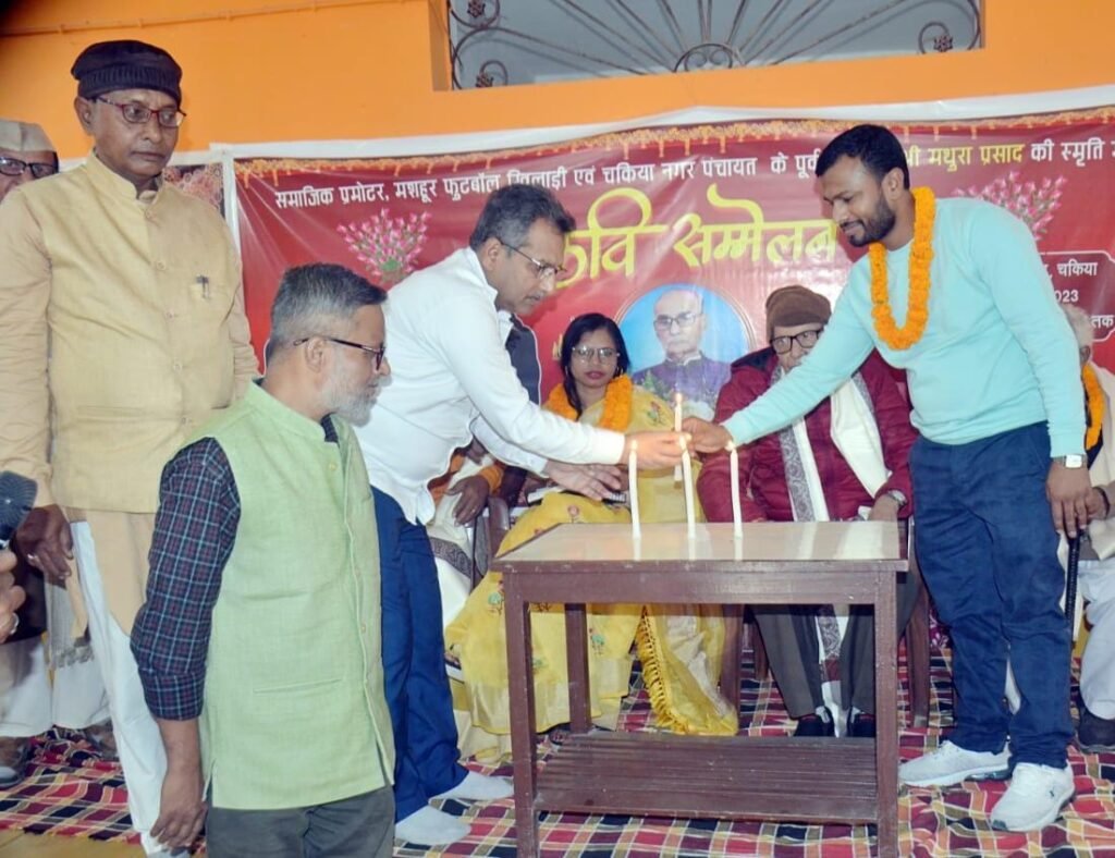 मोतिहारी (जिला ब्यूरो )। चकिया शहर स्थित एक होटल के सभागार में गुरुवार को समाजसेवी स्व मथुरा प्रसाद के स्मृति में एक कवि सम्मेलन का आयोजन किया गया। कवि सम्मेलन गंगा जमुनी तहजीब का एक खूबसूरत मिसाल भी पेश किया। राजस्थान के धवलपुर से आई कवित्री रजिया बेगम जिया ने सरस्वती वंदना प्रस्तुत कर कार्यक्रम की शुरुआत की। वही प्रसिद्ध गीतकार एवं कवि डॉ सोमनाथ ठाकुर ने कतरे से समंदर तक गुमनाम सिलसिला हूं । तोड़ हजार बंधन हर कैद में रहा हूं ।कद मापने बेचैन आसमान हूं छोटी सी जिंदगी से पर मौत से बड़ा हूं । पढ़ा तो श्रोता मंत्र मुग्ध हो गए तथा जमकर तालियां बजाई। वही वरिष्ठ पत्रकार सह कवि योगेंद्र नाथ शर्मा ने धूप चली डालों पर पात गिरे मौसम के।यादों के फूल छिड़क रहे हैं थम थम के। प्रस्तुत किया तो तालियों की आवाज से पूरा माहौल गुंजित हो उठी। दूसरी तरफ डॉ राजकुमार रंजन ने मैं रहता हूं जहां पर मकान के घने जंगल.जहां पसरी है सड़कें सपिनों से दिल हुए मरुस्थल। प्रस्तुत किया तो मौजूद लोग झूम उठे। वही कवित्री रजिया बेगम जिया ने हे प्रिय छोड़ न जाना जी न सकेंगे बिना तुम्हारे। प्यार किया तो प्यार निभाना तुम आंखों के तारे की प्रस्तुति ने श्रोताओं का मन मोह लिया। वहीं कवि सम्मेलन का संचालन कर रहे इंजीनियर आनंद कुमार मिश्रा ने अपने काव्य पाठ के माध्यम से श्रोताओं को अध्यात्म से जोड़े रखा।इस दौरान कवियों ने श्रोताओं काव्य पाठ के चासनी में ऐसे डुबोये रखा की वक्त कैसे गुजरी कि किसी को पता नहीं चला। इस दौरान आगत कवियों व अतिथियों को कुअवां गांव निवासी अमन ट्रेडर्स के प्रोपराइटर मो इस्तेयाक आलम ने माला पहना तथा अंग वस्त्र देकर भव्य स्वागत किया।कार्यक्रम की अध्यक्षता कर रहे प्रो संजय गुप्ता ने आगे बड़े पैमाने पर कवि सम्मेलन कराने का संकल्प लिया। मंच संचालन का सीनियर पत्रकार जोहा अफजल ने की। कार्यक्रम को सफल बनाने में प्रो मो रिजवान, मो कलीम, प्रकाश साह,मो हासिम,मो जामी सहित अन्य की अहम भूमिका थी।
