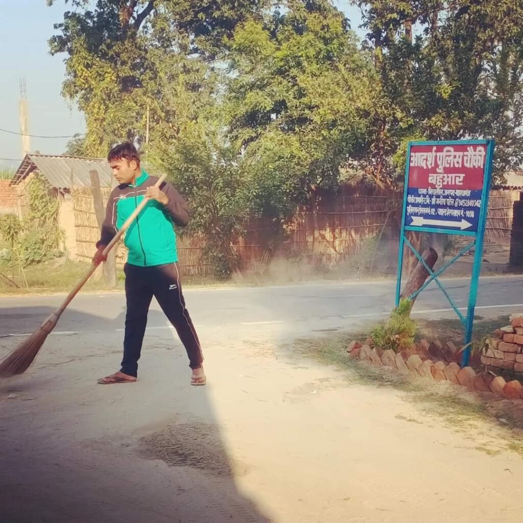 महराजगंज ( जनपद ब्यूरो )| महराजगंज जनपद के थाना निचलौल अंतर्गत आदर्श पुलिस चौकी बहुआर प्रभारी उपनिरीक्षक मनीष पटेल ने आज अपने जवानों के साथ पुलिस चौकी परिसर में झाड़ू लगाकर साफ-सफाई कराई स्वच्छ भारत अभियान के तहत पुलिस अधीक्षक डॉक्टर कौस्तुभ के निर्देश तथा क्षेत्राधिकार निचलौल अनिरुद्ध कुमार के मार्गदर्शन में आज दिन रविवार को स्वच्छता अभियान चलाया गया।