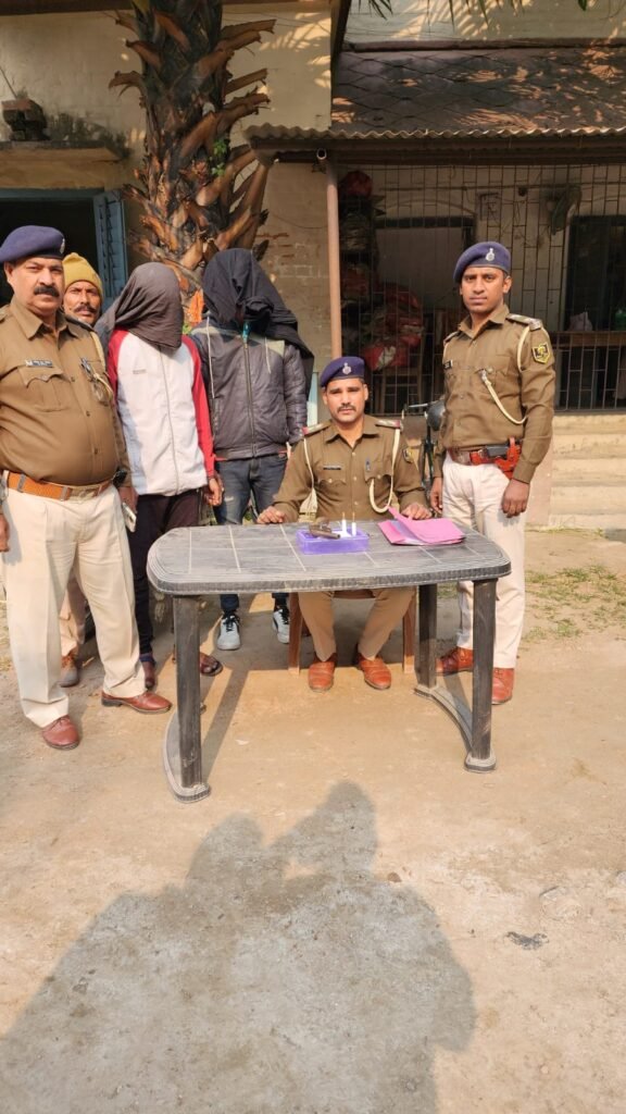 बेतिया (मोहन सिंह) : गुप्त सूचना के आधार पर बानुछापर ओ पी पुलिस ने अपराध की योजना बना रहे दो अपराधियों को एक देसी कट्टा एवं 315 बोर की दो जिंदा गोली के साथ धर दबोचा है कृष्ण उनके पास एक मोटरसाइकिल भी जप्त किया है उक्त जानकारी देते हुए बेतिया पुलिस अधीक्षक अमरकेश डी ने बताया कि पुलिस को गुप्त सूचना मिली कि रेलवे स्टेशन से पश्चिम रेलवे फाटक गौतमी टावर हाउस के सामने दो अपराधी अपराध की योजना बना रहे हैं सूचना के आलोक में एक टीम गठित कर छापामारी करने का निर्देश दिया गया गठित टीम द्वारा त्वरित कार्रवाई करते हुए छापामारी कर दो अपराधियों को एक देशी कट्टा एवं दो जिंदा गोली के साथ गिरफ्तार कर लिया गया पुलिस ने उनकी एक मोटरसाइकिल भी जब कर लिया गिरफ्तार अपराधियों में साठी थाना के सिरसिया बेलवा निवासी दीपक कुमार मिश्रा 22 वर्ष पिता स्वर्गीय हरिशंकर मिश्र एवं सेमरी साठी निवासी अफरोज आलम 19 वर्ष पिता मुस्तफा मियां शामिल है छापामारी दल में दरोगा सर्वेश यादव जमादार दीप नारायण प्रसाद व धर्मेंद्र कुमार सिंह आदि शामिल थे