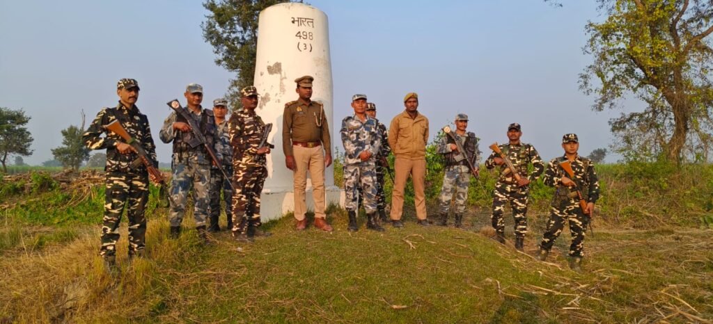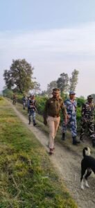 महराजगंज (जनपद ब्यूरो) : नवागत वरिष्ठ पुलिस अधीक्षक सोमेंद्र मीणा के आने से सुरक्षा एजेंसियां अलर्ट मूड में देखी जा रही हैं । मंगलवार को भारत नेपाल सीमा पर एसएसबी यूपी पुलिस तथा मित्र देश नेपाल राष्ट्र के नेपाली एपीएफ फोर्स के संयुक्त जवानों द्वारा पैदल फ्लैग मार्च किया गया।