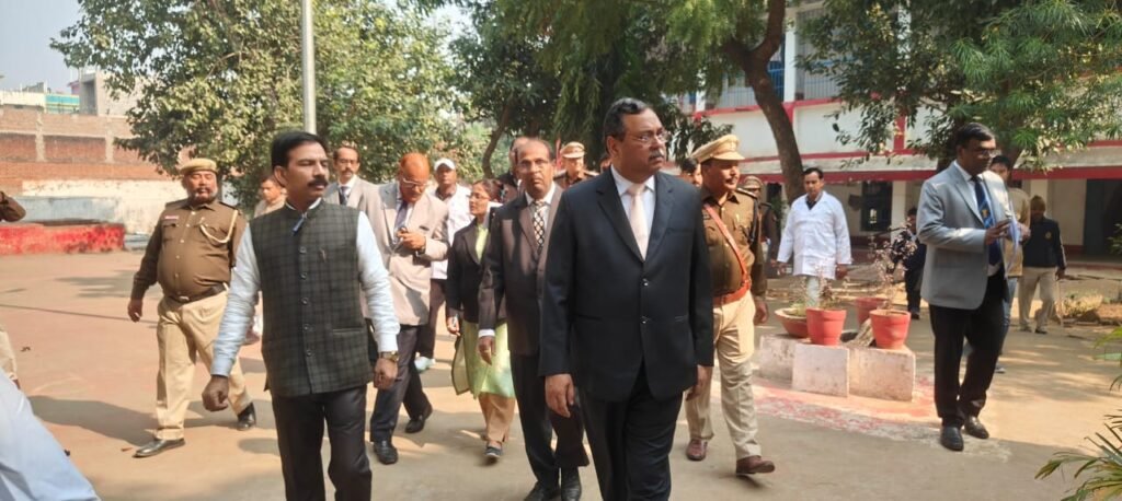 भोजपुर । माननीय उच्च न्यायालय, पटना के माननीय न्यायमूर्ति नवनीत कुमार पाण्डेय ने रविवार को मंडलकारा आरा का निरीक्षण किया। इसके साथ ही अपना रेडियो का भी जेल में उद्घाटन किया गया। मंडल कारा आरा में सजावार बंदी और विचाराधीन बंदी को मत्स्य पालन से संबंधित सर्टिफिकेट का वितरण भी किया गया। माननीय न्यायमूर्ति द्वारा मंडलकारा आरा परिसर में वृक्षारोपण भी किया गया और महिला बंदियों से मुलाकात भी की गई साथ ही साथ मंडलकारा के रसोई घर का भी निरीक्षण किया गया। इसके अलावा माननीय न्यायमूर्ति द्वारा व्यवहार न्यायालय आरा परिसर में स्थित अभिलेखागार, हाजत, लीगल ऐड डिफेंस काउंसिल सिस्टम एवं कोर्ट परिसर में निर्माणाधीन भवनों का भी निरीक्षण किया गया एवं सभी न्यायिक पदाधिकारीगण के साथ जिला एवं सत्र न्यायाधीश भोजपुर ब्रजेश कुमार मालवीय के प्रकोष्ठ में बैठक कर उपस्थित सभी न्यायिक पदाधिकारीगण को कई आवश्यक दिशा निर्देश दिया गया।