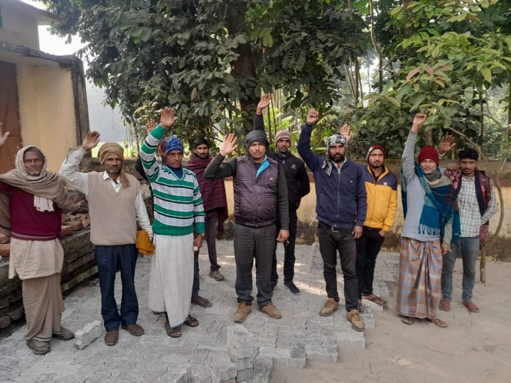 पेवर ब्लॉक सोलिंग कार्य को रोक कर विरोध प्रदर्शन