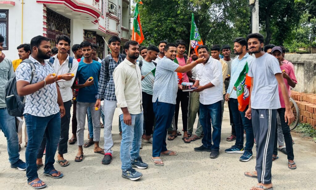 बेतिया, (ए.एल.न्यूज़)। 9 जुलाई 25 को भारतीय जानता युवा मोर्चा के सैकड़ो कार्यकर्ताओं ने बिहार सरकार के द्वारा बिहार युवा आयोग के गठन की घोषणा के बाद एक-दूसरे को मिठाई खिला व पठाखा फोड़कर मुख्यमंत्री नीतीश कुमार, उपमुख्यमंत्री सम्राट चौधरी व विजय सिन्हा जी के प्रति धन्यवाद ज्ञापित करते हुए आभार प्रकट किया है।