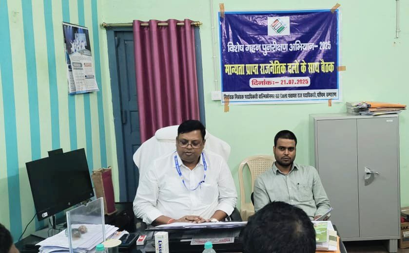 सर्वप्रथम बैठक में सभी उपस्थित प्रतिनिधियों को निर्वाचक निबंधन पदाधिकारी द्वारा प्रखंडवार गणना प्रपत्र (Enumeration Form) का वितरण, संग्रहण एवं अपलोडिंग कार्य के बारे में विस्तार से अवगत कराया गया। निर्वाचक निबंधन पदाधिकारी द्वारा बताया गया कि सभी योग्य मतदाताओं को शामिल करने हेतु प्रतिदिन बी०एल०ओ० एवं बी०एल०ओ० सुपरवाइजर के द्वारा कार्य किया जा रहा है। साथ ही बी०एल०ओ० के कार्य प्रगति की प्रतिदिन समीक्षा की जा रही है। इसी क्रम में 21.07.2025 को सभी BLO के द्वारा अपने मतदान केंद्र स्तर पर संबंधित बूथ लेवल एजेंट (BLA) के साथ बैठक कर मृत, स्थानांतरित एवं दोहरी प्रविष्टि मतदाओं की सूची उपलब्ध कराया जा रहा है, ताकि BLA के सहयोग से अधिक से अधिक योग्य मतदाताओं को शामिल किया जा सके। इस कार्य में स्थानीय जनप्रतिनिधियों का भी सहयोग प्राप्त किया जा रहा है। गणना प्रपत्र के संग्रहण एवं अपलोडिंग का कार्य के दौरान कोई भी योग्य मतदाता वंचित न रह पाए, इस हेतु सभी राजनीतिक दलों के प्रतिनिधियों से आग्रह किया गया कि अपने स्तर से ऐसे मतदाताओं की पहचान कर उनकी जानकारी संबंधित बी०एल०ओ० एवं सहायक निर्वाचक निबंधन पदाधिकारियों (EROs) को उपलब्ध कराने में सक्रिय सहयोग करें, ताकि कोई भी पात्र मतदाता निर्वाचक नामावली में पंजीकृत होने से वंचित न रह जाए