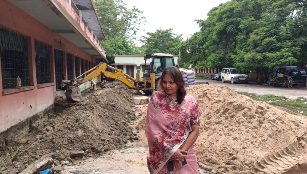 नगर भवन को जल जमाव से बचाने के लिए जारी निर्माण कार्य का महापौर ने किया निरिक्षण, दिए दिशा निर्देश