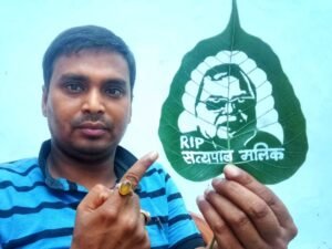 सैंड आर्टिस्ट मधुरेंद्र ने 3 सेमी के आकर वाली पीपल के हरे पत्तों में पूर्व गवर्नर का तस्वीर उकेर लिखा, “रिप (RIP) सत्यपाल मलिक” अपनी खास अंदाज में दी श्रद्धांजलि