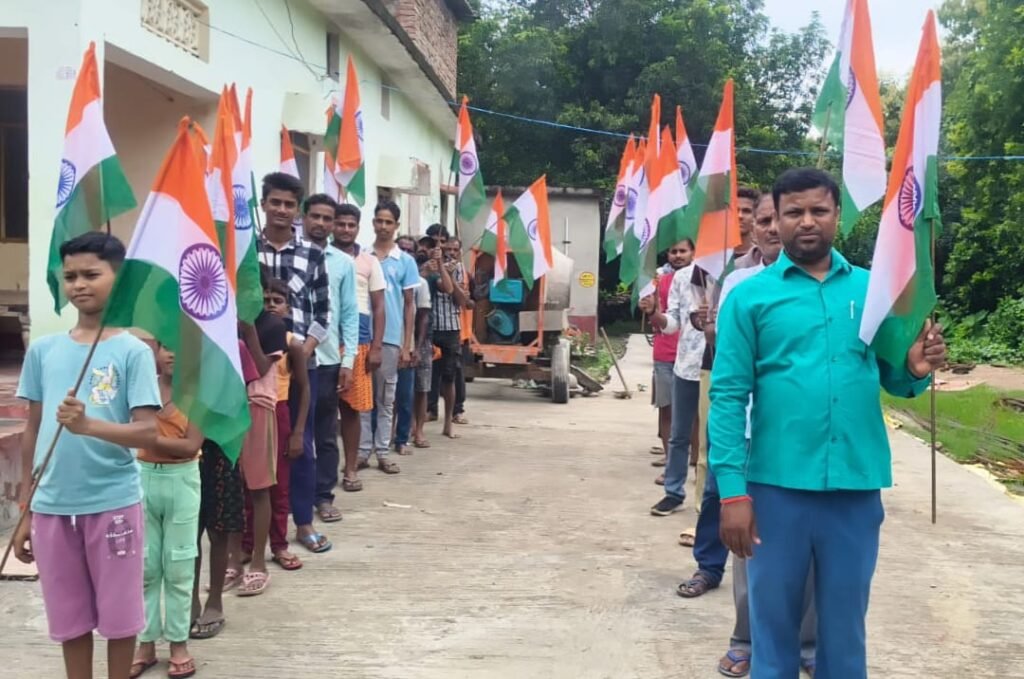 महराजगंज, (ए.एल.न्यूज़)। जनपद के ब्लॉक निचलौल क्षेत्र अंतर्गत भारत नेपाल बॉर्डर से सटे ग्राम बहुआर कला निवासी, जिला पंचायत सदस्य प्रतिनिधि मनीष कनौजिया द्वारा विशेष तिरंगा यात्रा निकाला गया। ग्राम सभा के गली-गली तक पैदल प्रभात फेरी निकालते हुए अपने निवास स्थान पहुंचे। जिसमें, स्थानीय लोग बड़े ही उत्साह के साथ तिरंगा यात्रा में शामिल हुए हुए। पैदल यात्रा के आखिर में अपने निवास स्थान पर वार्ड संख्या (1) से जिला पंचायत सदस्य प्रतिनिधि मनीष कनौजिया ने चंद्रशेखर आजाद की प्रतिमा पर माल्यार्पण कर वीर शहीदो को याद किया।