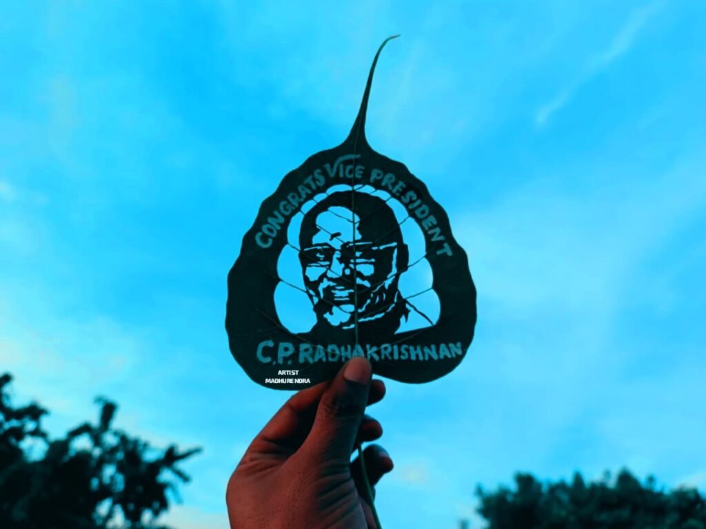 लीफ आर्टिस्ट मधुरेंद्र ने नवनियुक्त उप राष्ट्रपति सीपी राधाकृष्णन को दी, अनूठा बधाई