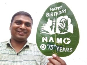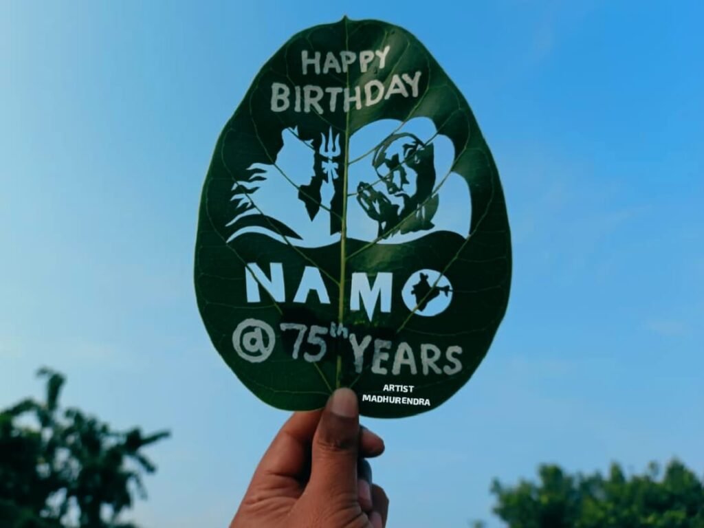 बिहार के सैंड आर्टिस्ट मधुरेंद्र ने बरगद के पत्ता पर पीएम का तस्वीर बनाकर किया अनोखा स्वागत, लिखा- “हैप्पी बर्थडे नमो”