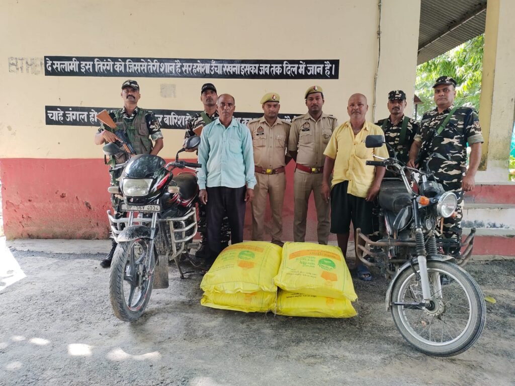 महाराजगंज, (ए.एल.न्यूज़)। जनपद के थाना निचलौल अंतर्गत भारत नेपाल बॉर्डर पर बसे 22 वीं वाहिनी सशस्त्र सीमा बल बीओपी झूलनीपुर एवं पुलिस चौकी बहुआर प्रभारी उप निरीक्षक भूपेंद्र प्रताप सिंह ने बताया कि सशस्त्र सीमा बल एवं पुलिस बल के साथ रविवार को मय हमराह अंकित यादव कांस्टेबल आनंद यादव एवं एसएसबी बीओपी झुलनीपुर से एस. आई. जीडी दलीप सिंह, मुख्य आरक्षी विजय शंकर यादव, आरक्षी बंकर अमोल जी, आरक्षी विनोद कुमार कुशवाहा के साथ पिलर संख्या 500/5 से 700 मीटर दूर झुलनीपुर गंडक नहर पुल पर दो मोटरसाइकिल पर भारतीय यूरिया खाद लगा हुआ था जिसको रोका गया पूछताछ में अपना नाम मुहम्मद खान पठान पुत्र रमतूल पठान व राधेश्याम नेटुवा पुत्र तिलक निवासीगण रामग्राम वार्ड नं 7 थाना नवल परासी जनपद नवल परासी राष्ट्र नेपाल बताया। दो मोटरसाइकिल पर कुल 04 बोरी भारतीय यूरिया खाद बरामद किया गया। बरामद भारतीय उर्वरक को कस्टम निचलौल को सुपुर्द किया गया