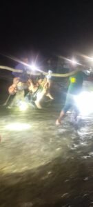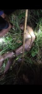 घटनास्थल पर वनकर्मी और ग्रामीण शिकार हुये ग्रामीण की खोज करते