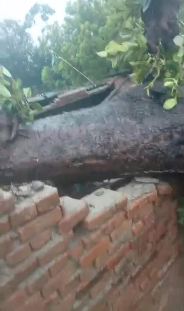 जीउत मियां के घर पर विशाल बरगद का पेड़ गिरने से चार कमरों का एक घर बुरी तरह से ध्वस्त हो गया। साथ हीं जीउत मियां का 20 वर्षीय पुत्र जख्मी हो गया। जिसे इलाज के लिए मझौलिया पीएचसी में भर्ती कराया गया है।