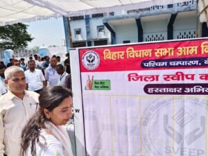 इस अवसर पर श्रीमती नगमा तब्बसुम, नोडल पदाधिकारी स्वीप कोषांग, प० चम्पारण ने मतदाता जागरूकता का संकल्प दिलाई