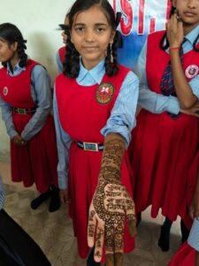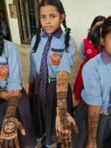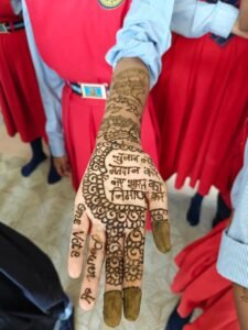 आज छात्राओं ने अपने हाथों में मेंहदी लगाकर मतदान की अपील करते हुए कहा दादी, दीदी, मां, चाची 11 नवंबर भूल ना जाना, मतदान करने जरूर जाना।