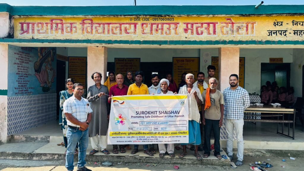 महराजगंज, (ए.एल.न्यूज़)। दिनांक 17 अक्टूबर 2025 को पूर्वांचल ग्रामीण सेवा समिति, शाखा-निचलौल द्वारा संचालित सुरोखित शैशव कार्यक्रम के तहत प्राथमिक विद्यालय मटरा में विद्यालय प्रबंधन समिति और पंचायत भवन मटरा में ग्राम बाल कल्याण एवं संरक्षण समिति का क्षमता वर्धन कार्यक्रम किया गया। विधालय प्रबंधन समिति में मिशन शक्ति फेज 5.0 अभियान, समिति के पदाधिकारियों/सदस्यों के जिम्मेदारी, बाल श्रम एवं बाल विवाह मुक्त ग्राम करने, बच्चों की नियमित उपस्थिति,