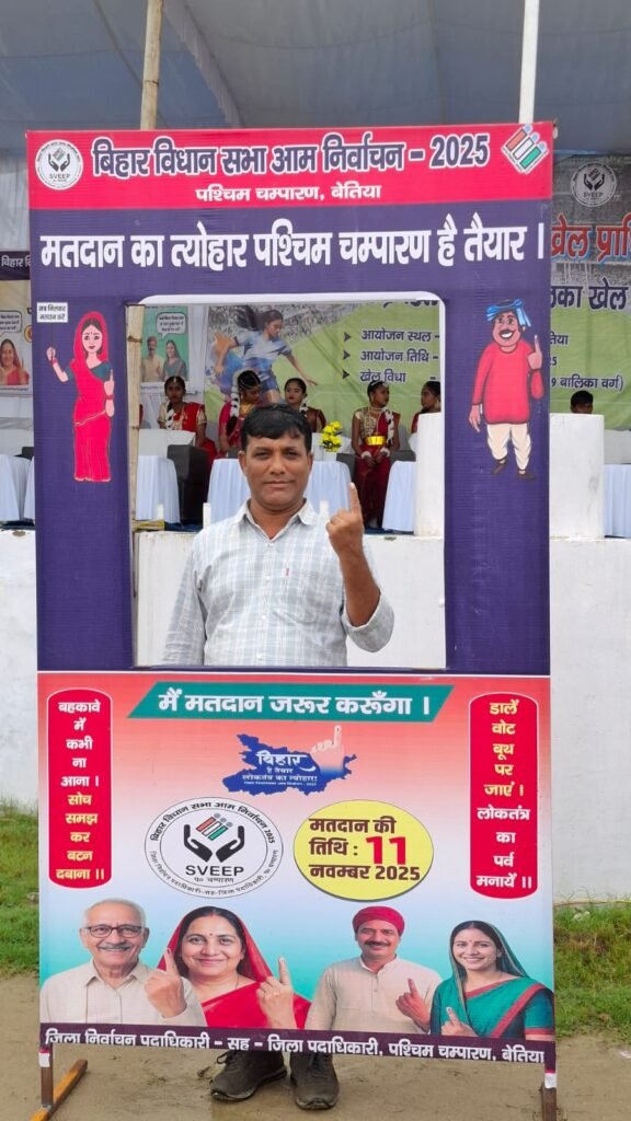 बेतिया, (ए.एल.न्यूज़)। महाराजा स्टेडियम, बेतिया में आयोजित राज्य स्तरीय अंतर प्रमंडल फुटबॉल बालिका खेल प्रतियोगिता के उद्घाटन समारोह में इस बार खेल भावना के साथ मतदाता जागरूकता का अनूठा संगम देखने को मिला। जिला स्वीप कोषांग की ओर से आयोजित इस कार्यक्रम में नोडल पदाधिकारी, मीडिया कोषांग, राकेश कुमार ने विभिन्न प्रमंडलों से आई बालिका खिलाड़ियों को मतदान करने का संकल्प दिलाया और लोकतंत्र के इस महापर्व में सक्रिय भागीदारी का संदेश दिया।