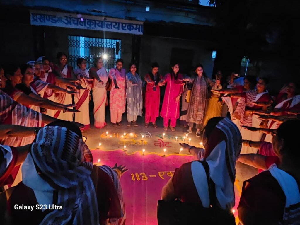 एकमा, (सारण)। विधानसभा चुनाव को लेकर एकमा प्रखंड में मतदाता जागरूकता गतिविधियां तेज हो गई हैं। रविवार की शाम प्रखंड मुख्यालय परिसर में रंगोली सजाकर व दीप प्रज्वलित किया गया। इसके बाद प्रखंड मुख्यालय से एकमा बजार तक कैंडल मार्च निकालकर मतदाताओं को सपरिवार मतदान के लिए प्रेरित किया गया। “लोकतंत्र का करें सम्मान, परिवार सहित करें मतदान” के संदेश के साथ यह कैंडल मार्च प्रखंड मुख्यालय से एकमा बाजार तक निकाला गया। कार्यक्रम का नेतृत्व बीडीओ डॉ अरुण कुमार व आंगनबाड़ी परियोजना पदाधिकारी (सीडीपीओ) मनीषा रानी ने किया।