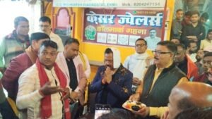 व्यवसायी अनिल कुमार वर्मा के नेतृत्व में फूलमाला पहनाकर एवं अभिनंदन समारोह के माध्यम से डीआईजी मनोज कुमार सिंह का सम्मान किया गया