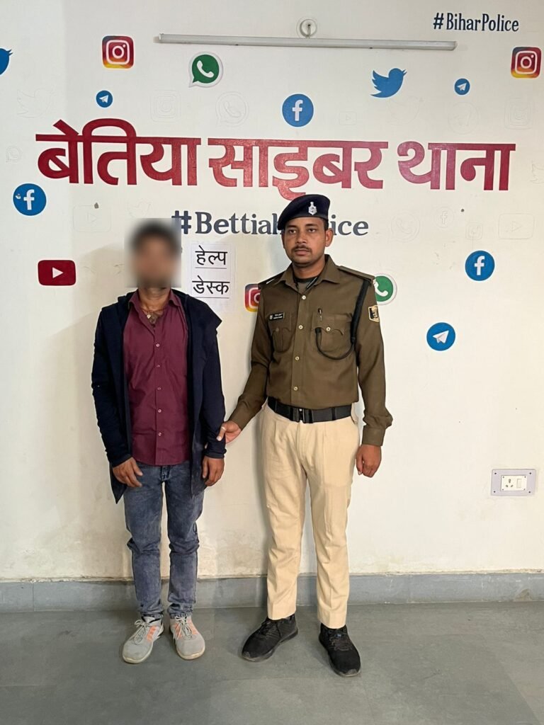 बेतिया, (ए.एल.न्यूज़)। बेतिया साइबर थाना द्वारा महिला पीड़िता का आवेदन प्राप्त हुआ जिसमें उल्लेख किया गया था की महिला के पति का फर्जी आवाज निकल कर बोला गया की उनके पति को गलत काम करते हुए पकड़ा गया है तथा इनके पति को जान से मारने का भय दिखा कर इनसे व्हाट्सप्प वीडियो कॉल पर अश्लील एवं आपतिजनक हरकते कार्रवाई गई तथा उसका वीडियो बनाकर ब्लैकमेल किया गया । उक्त आवेदन के आधार पर बेतिया साइबर थाना कांड स० 21 /25, दिनांक – 08 /06 /2025 दर्ज किया गया था। उक्त कांड में तकनीकी अनुसंधान के आधार पर अप्राथमिकी अभियुक्त सचिन कुमार तिवारी, उम्र 27 वर्ष, पिता मुरारी तिवारी, वार्ड नं0-19, पुड्डुकिया , जैतिया, थाना – चनपटिया , जिला – प0 चंपारण पश्चिम चम्पारण , बेतिया को दिनांक – 17 /11 /2025 को घटना में संलिप्त 01 मोबाइल जिसमे अश्लील एवं आपत्तिजनक व्हाट्सप्प वीडियो कॉल का स्क्रीन रिकॉर्डिंग है के साथ गिरफ्तार कर माननीय न्यायालय में उपस्थापित किया गया है। गिरफ्तार अभियुक्त ने कांड में अपनी संलिप्तता स्वीकार की तथा ऐसा कृत्य अन्य 50-52 महिलाओं /लड़कियों के साथ करने की बात का भी खुलासा किया है।