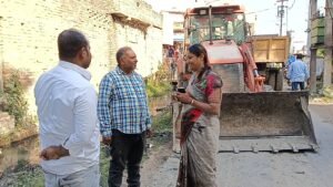 नगर थाना रोड मुख्य नाला उड़ाही/सफाई का निरीक्षण करने पहुंचीं महापौर के दिया विकास कार्यों में तेजी लाने का निर्देश