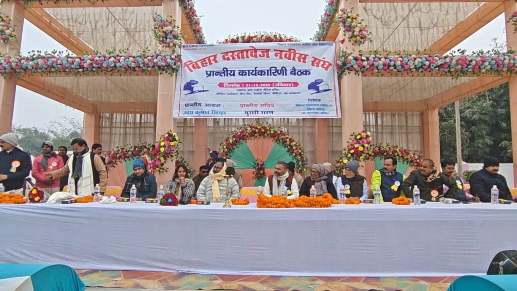 बेतिया, (मोहन सिंह)। बिहार दस्तावेज नवीस संघ, पश्चिम चंपारण का जिला सम्मेलन 21 दिसंबर 2025 रविवार को बेतिया स्थित बरवत के सनराइज विवाह भवन में संपन्न हुआ। इस सम्मेलन में महासंघ के पदाधिकारियों ने भी भाग लिया।
