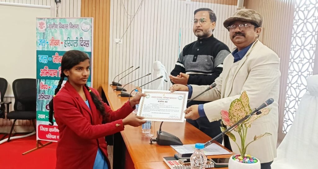 कार्यक्रम को संबोधित करते हुए अपर समाहर्ता-सह-प्रभारी उप विकास आयुक्त, राजीव रंजन सिन्हा ने जल-जीवन-हरियाली अभियान की शुरुआत, उद्देश्य एवं उपलब्धियों की विस्तार से जानकारी दी। उन्होंने कहा कि यह अभियान केवल सरकारी कार्यक्रम नहीं, बल्कि जनभागीदारी से जुड़ा एक सतत आंदोलन है। पर्यावरण संरक्षण के लिए प्रत्येक व्यक्ति को छोटी-छोटी लेकिन प्रभावी पहल करनी होगी। उन्होंने कहा कि हमें आने वाली पीढ़ियों के लिए स्वच्छ वातावरण, पर्याप्त जल संसाधन और हरियाली सुनिश्चित करनी है, ताकि उनका भविष्य सुरक्षित एवं सुखमय हो सके। इसके लिए सभी संबंधित विभागों को आपसी समन्वय के साथ पूरी प्रतिबद्धता से कार्य करना होगा। उन्होंने लोगों से अपील की कि हर व्यक्ति कम से कम एक पौधा अवश्य लगाए तथा इस सप्ताह कम से कम पांच पौधे लगाने का संकल्प लें। इस अवसर पर अनुमंडल पदाधिकारी, बेतिया सदर, विकास कुमार ने जल-जीवन-हरियाली अभियान के व्यावहारिक पहलुओं पर प्रकाश डालते हुए कहा कि जल संचयन वर्तमान समय की सबसे बड़ी आवश्यकता है। उन्होंने वर्षा जल संचयन, तालाबों एवं जल स्रोतों के संरक्षण पर विशेष बल देते हुए कहा कि पर्यावरण संरक्षण की दिशा में आज किए गए प्रयासों का लाभ आने वाली पीढ़ियों को मिलेगा। निदेशक, एनईपी, पुरुषोतम त्रिवेदी ने जल-जीवन-हरियाली अभियान की महत्ता पर विस्तार से प्रकाश डालते हुए इसे पर्यावरण संतुलन बनाए रखने की दिशा में एक महत्वपूर्ण पहल बताया। वहीं कार्यपालक अभियंता, मनरेगा ने मनरेगा योजना के अंतर्गत जल संरक्षण एवं पर्यावरण से जुड़े किए जा रहे कार्यों की विस्तृत जानकारी दी। कार्यक्रम के दौरान जल-जीवन-हरियाली अभियान के अंतर्गत पूर्व में आयोजित क्विज प्रतियोगिता’’ में उत्कृष्ट प्रदर्शन करने वाले प्रतिभागियों को सम्मानित किया गया। प्रथम स्थान प्राप्त करने वाले आयुष कुमार गुप्ता, द्वितीय स्थान पर रहे मनोरंजन कुशवाहा एवं तृतीय स्थान प्राप्त करने वाली खुशी कुमारी को प्रशस्ति पत्र प्रदान किए गए। निदेशक, एनईपी द्वारा जानकारी दी गई कि प्रथम पुरस्कार राशि 6000, द्वितीय 5000 एवं तृतीय 4000 संबंधित प्रतिभागियों के बैंक खातों में आरटीजीएस के माध्यम से अंतरित की जाएगी। इस अवसर पर अपर समाहर्ता-सह-प्रभारी उप विकास आयुक्त राजीव रंजन सिन्हा, निदेशक डीआरडीए अरुण प्रकाश, अनुमंडल पदाधिकारी बेतिया सदर विकास कुमार, निदेशक एनईपी पुरुषोतम त्रिवेदी, जिला सूचना एवं जनसम्पर्क पदाधिकारी राकेश कुमार सहित अन्य पदाधिकारी एवं कर्मी उपस्थित थे।