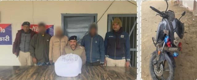 बेतिया, (मोहन सिंह)। पुलिस अधीक्षक बेतिया के निर्देशानुसार अवैध मादक पदार्थ के विरुद्ध चलाए जा रहे अभियान के दौरान गौनाहा थाना क्षेत्र अंतर्गत पंडई पुल के पास से 13.715 kg गांजा, एक मोटरसाईकिल, के साथ तीन अभियुक्तों को गिरफ्तार किया गया। गौनाहा थाना द्वारा प्राथमिकी दर्ज कर विधि सम्मत कार्रवाई की जा रही है।