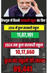 1. प्रदेश में एक दशक पहले जहां 1,14,972 स्कूल थे, आज घटकर 82,128 रह गये हैं यानि 32,844 स्कूलों (28.56 प्रतिशत) पर ताला लग गया है।