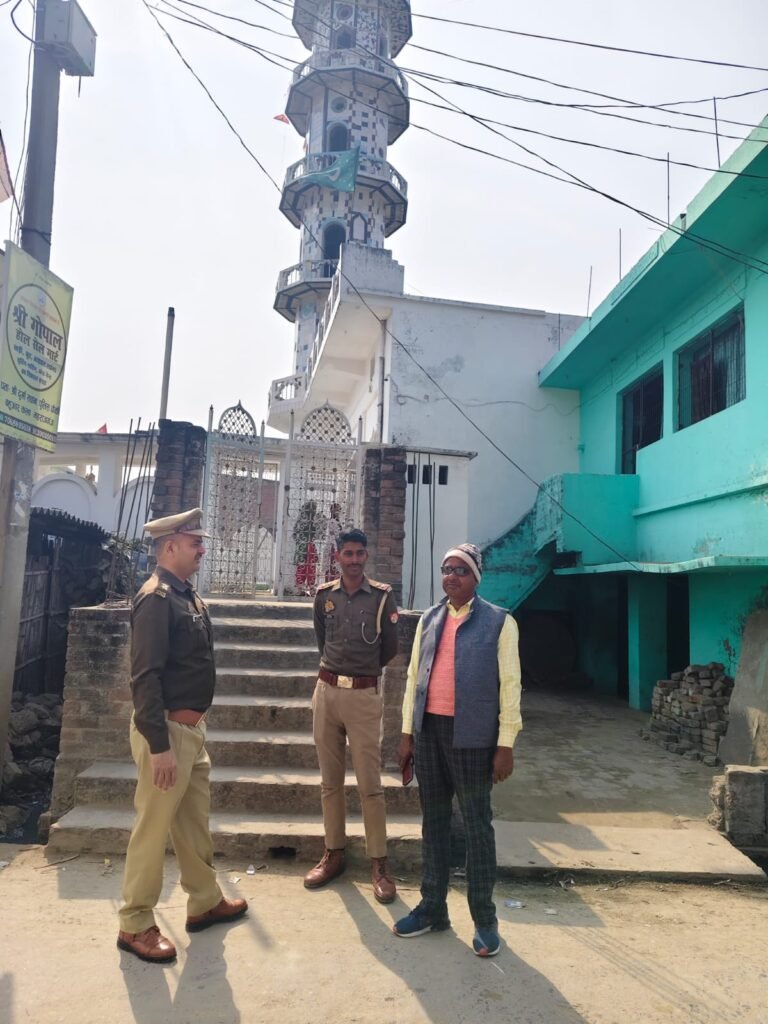 महराजगंज, (तैयब अली चिश्ती)। जनपद के थाना निचलौल क्षेत्र अंतर्गत पुलिस चौकी बहुआर प्रभारी उप निरीक्षक दीपक सिंह ने शब-ए-बारात पर्व को ध्यान में रखते हुए मिश्रित आबादी क्षेत्र मिश्रौलिया में भ्रमण कर शब- ए- बारात के दृष्टिगत गांव में शांति और सुरक्षा व्यवस्था को दुरुस्त करने के लिए धर्म गुरुओं से मुलाकात कर जायजा लिया।