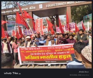 बेतिया, (मोहन सिंह)। ट्रेड यूनियन सेंटर ऑफ इंडिया (टीयूसीआई) के जिला कमिटी की ओर से शहीद स्मारक से एक विशाल जुलूस, चार लेबर कोड के विरोध में निकाला गया। जुलूस समाहरणालय के गेट के पास एक सभा में तब्दील हो गया।सभा स्थल पर चार संहिता काला कानून की प्रतियाँ जलाई गयी।