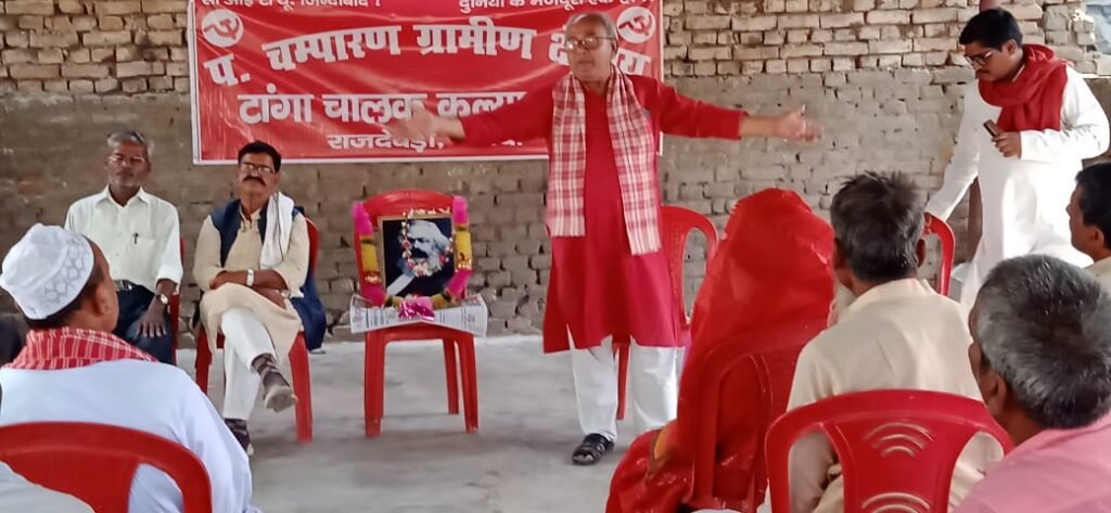 पश्चिम चंपारण ग्रामीण क्षेत्रीय तांगा चालक कल्याण संघ  सीटू, के राज देवड़ी बेतिया स्थित कार्यालय में कार्ल मार्क्स की 205 वीं जयंती के अवसर पर माल्यार्पण किया गया एवं श्रद्धांजली दी गई। इस अवसर पर सभा की अध्यक्षता प्रकाश वर्मा ने किया। बिहार राज्य रिक्शा मजदूर सभा के अध्यक्ष प्रभुराज नारायण राव, किसान नेता चांदसी प्रसाद यादव, सीटू के जिला सचिव शंकर कुमार राव, खेतिहर मजदूर यूनियन के म. हनीफ, तांगा चालक कल्याण संघ के महासचिव नीरज बरनवाल, रिक्शा चालक संघ के सुशील श्रीवास्तव, किसान नेता म. वहीद, दोवा हकीम, मनोज कुशवाहा, राजदा खातून आदि ने अपना विचार दिया।
