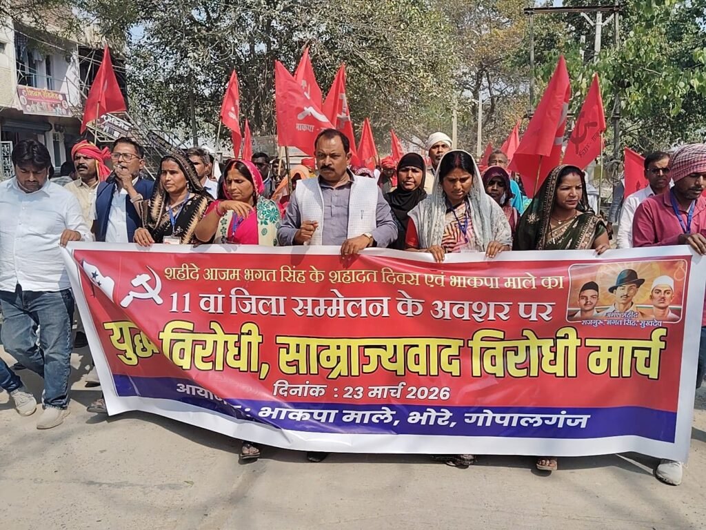 बेतिया, (मोहन सिंह)। भाकपा (माले) का 11 वां गोपालगंज जिला सम्मेलन आज शहीदे आजम भगत सिंह को उनकी शहादत दिवस पर याद करते हुए अमरीका-इजरायल द्वारा ईरान पर जारी हमले के खिलाफ विरोध मार्च निकलने के साथ शुरू हुआ।