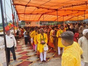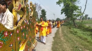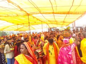 सिर पर कलश धारण कर निकली महिलाओं ने पूरे गांव का भ्रमण किया, जिससे पूरा क्षेत्र भक्तिमय माहौल में डूब गया। “जय माता दी” के जयघोष से वातावरण गूंज उठा। इस अवसर पर यज्ञ समिति के अध्यक्ष भास्कर विश्वकर्मा की महत्वपूर्ण भूमिका रही।