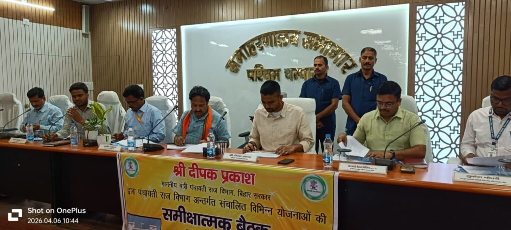 बेतिया, (मोहन सिंह)। समाहरणालय सभागार में आज पंचायती राज विभाग के अंतर्गत संचालित विभिन्न योजनाओं की विस्तृत समीक्षा बैठक आयोजित की गई। बैठक की अध्यक्षता बिहार सरकार के पंचायती राज मंत्री दीपक प्रकाश ने की।