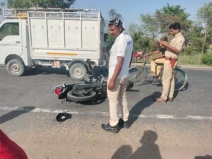 बाइक पर सवार दो युवक सामने से आ रहे अज्ञात वाहन से टक्कर के बाद गंभीर रूप से घायल हो गए। हादसे में एक युवक की मौके पर ही मौत हो गई, जबकि दूसरा युवक जिंदगी और मौत के बीच जूझ रहा है।