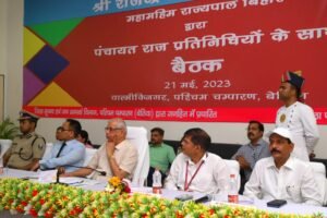 वन सभागार में जिले के सभी विभागों के अधिकारियों के साथ विचार-विमर्श करते हुये राज्यपाल ने वन सभागार में जिले के सभी विभागीय अधिकारियों और कर्मियों के साथ तकरीबन 3 घंटे तक बैठक किया।