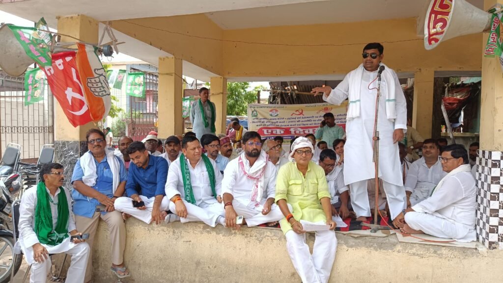 महागठबंधन के आह्वान पर आरा प्रखंड मुख्यालय पर धरना-प्रदर्शन किया गया